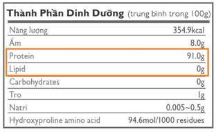 - Tinh khiết 100% là collagen (gồm 1% ash).